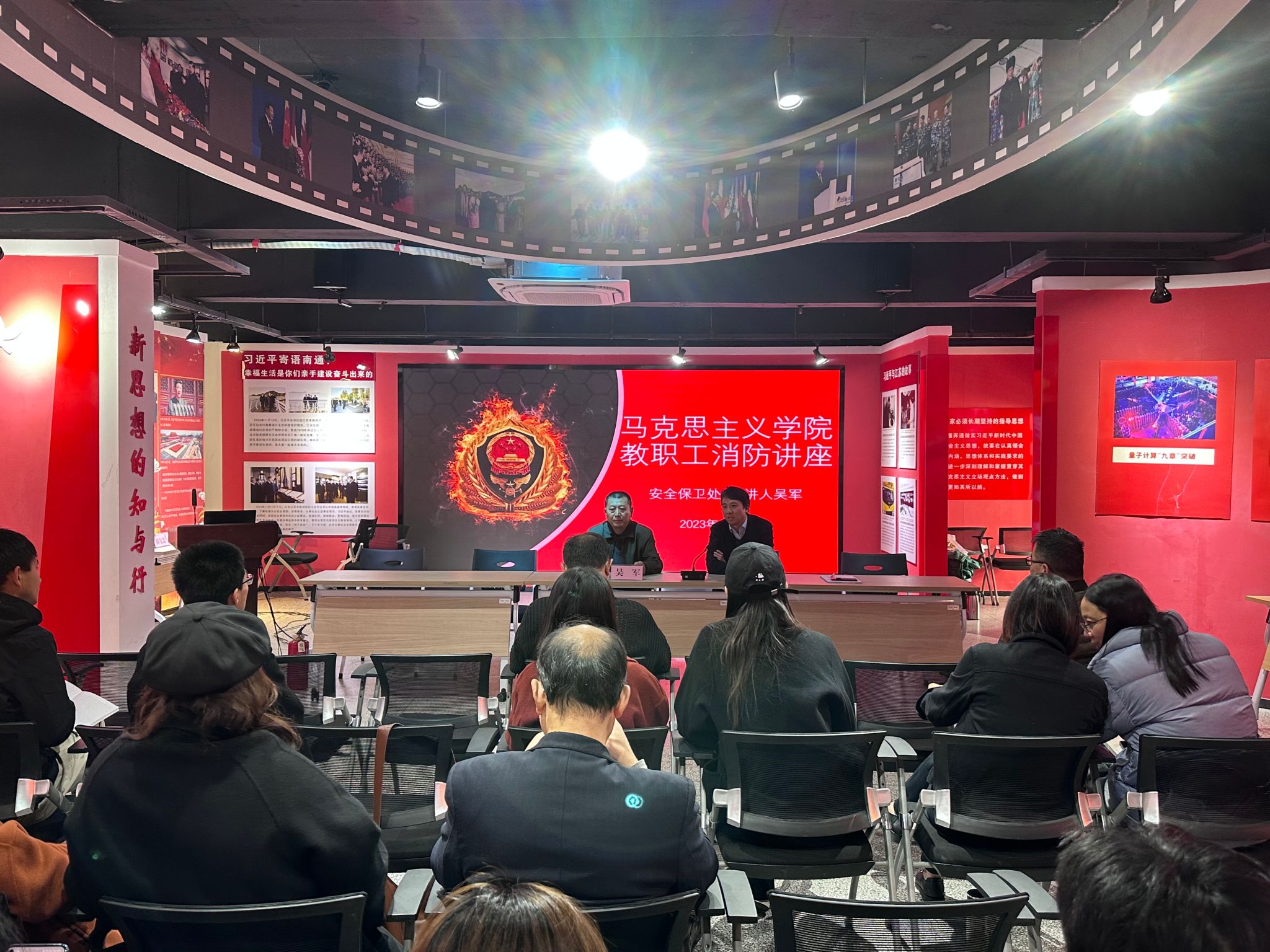 为认真贯彻落实习近平总书记关于安全工作的重要指示精神,不断增强教职工的消防安全意识,提高自救、互救以及逃生能力,根据我校消防安全月的统一安排,11月22日下午,安全保卫处与马克思主义学院在崇川校区致用楼联合举办了一期消防讲座。讲座由马克思主义学院副院长朱建主持,安全保卫处消防管理员吴军主讲,马克思主义学院的30多名教师参加了培训。