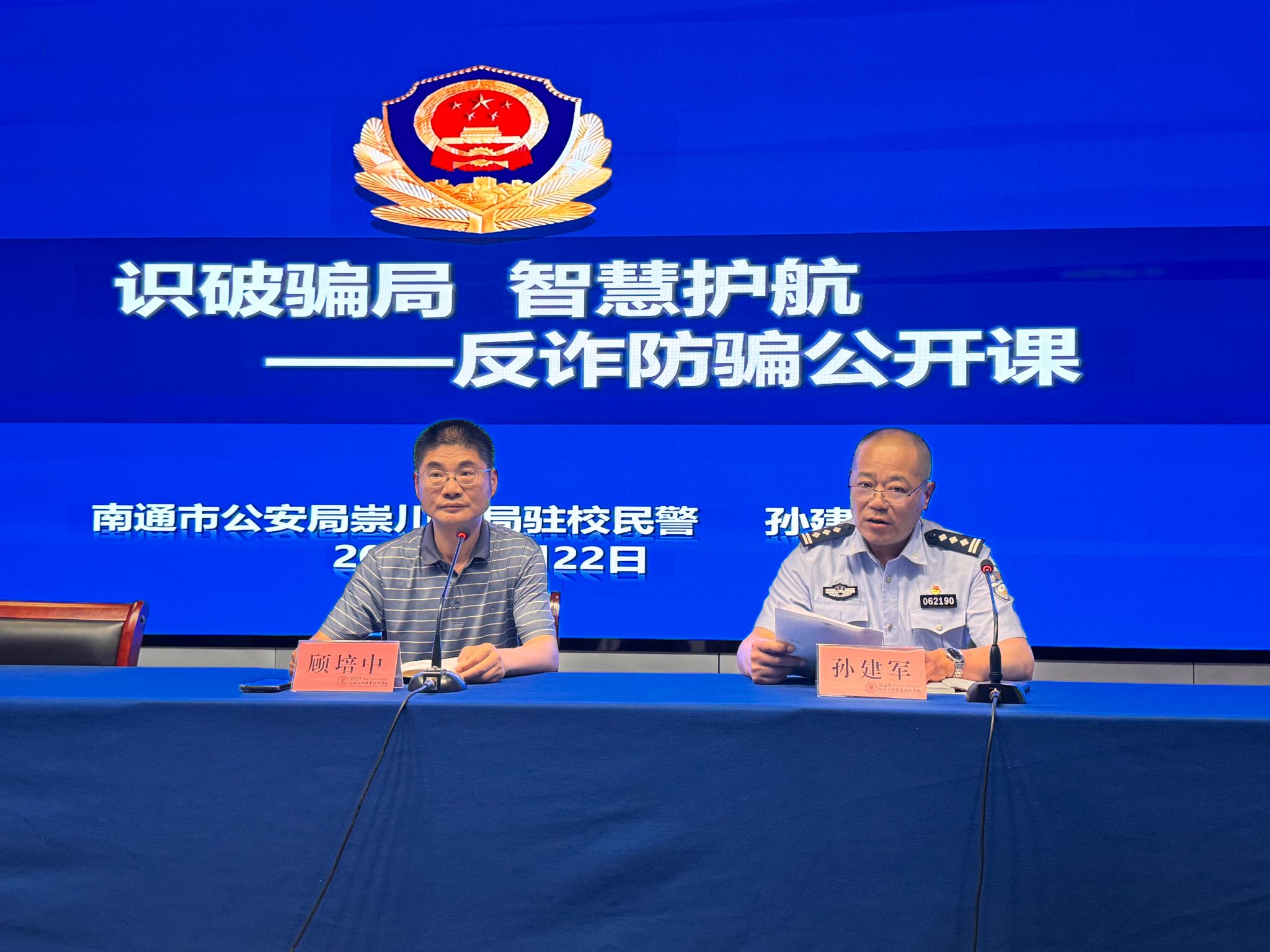 5月22日下午,“识破骗局,智慧护航”反诈防骗公开课在崇川校区强毅楼12楼演播厅举行。崇川公安分局驻校民警孙建军,安全保卫处处长顾培中,各二级学院分管学生工作的副书记、辅导员参加了此次活动。