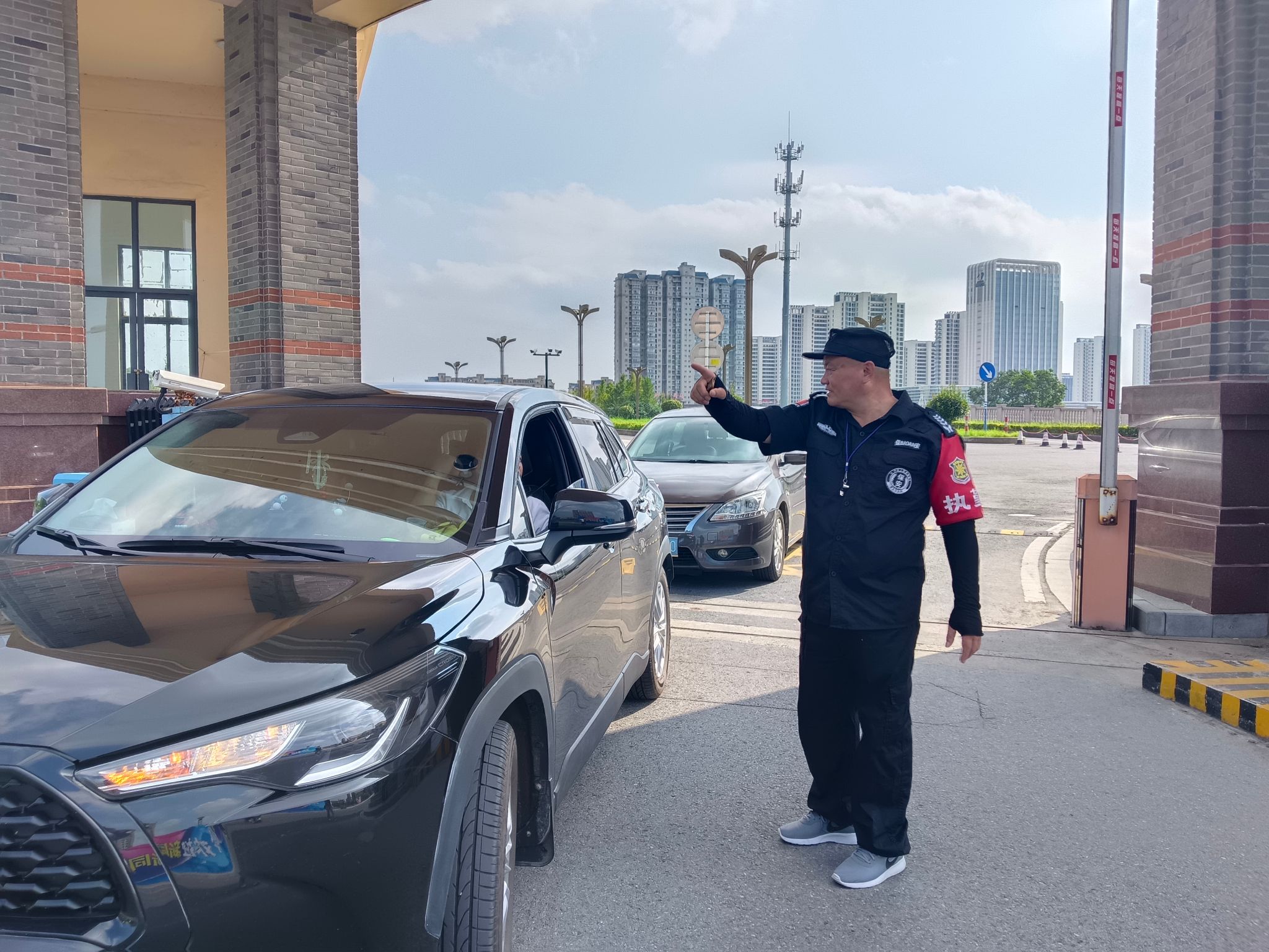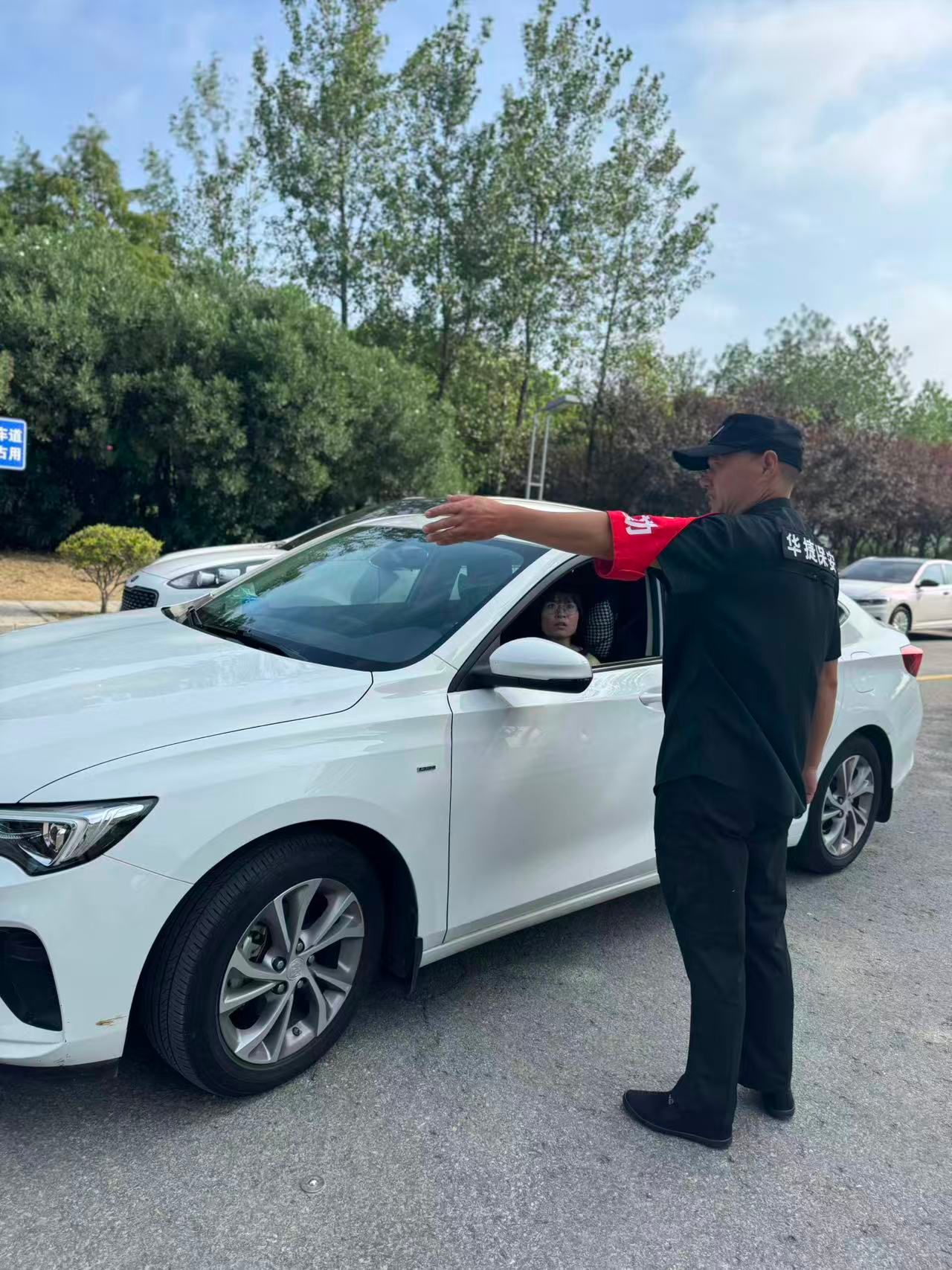 迎新当日,车流量大,校内道路交通压力陡增。面对复杂艰巨的迎新安保任务,保安师傅们顾不上擦拭汗水,专注于交通指挥,他们手势标准,时而指挥车辆前进;时而指挥车辆停止,通过他们的辛勤引导,校园内车辆行驶通畅、停放有序。整个校园的交通井然有序,为新生和家长们的出行提供了极大的便利。