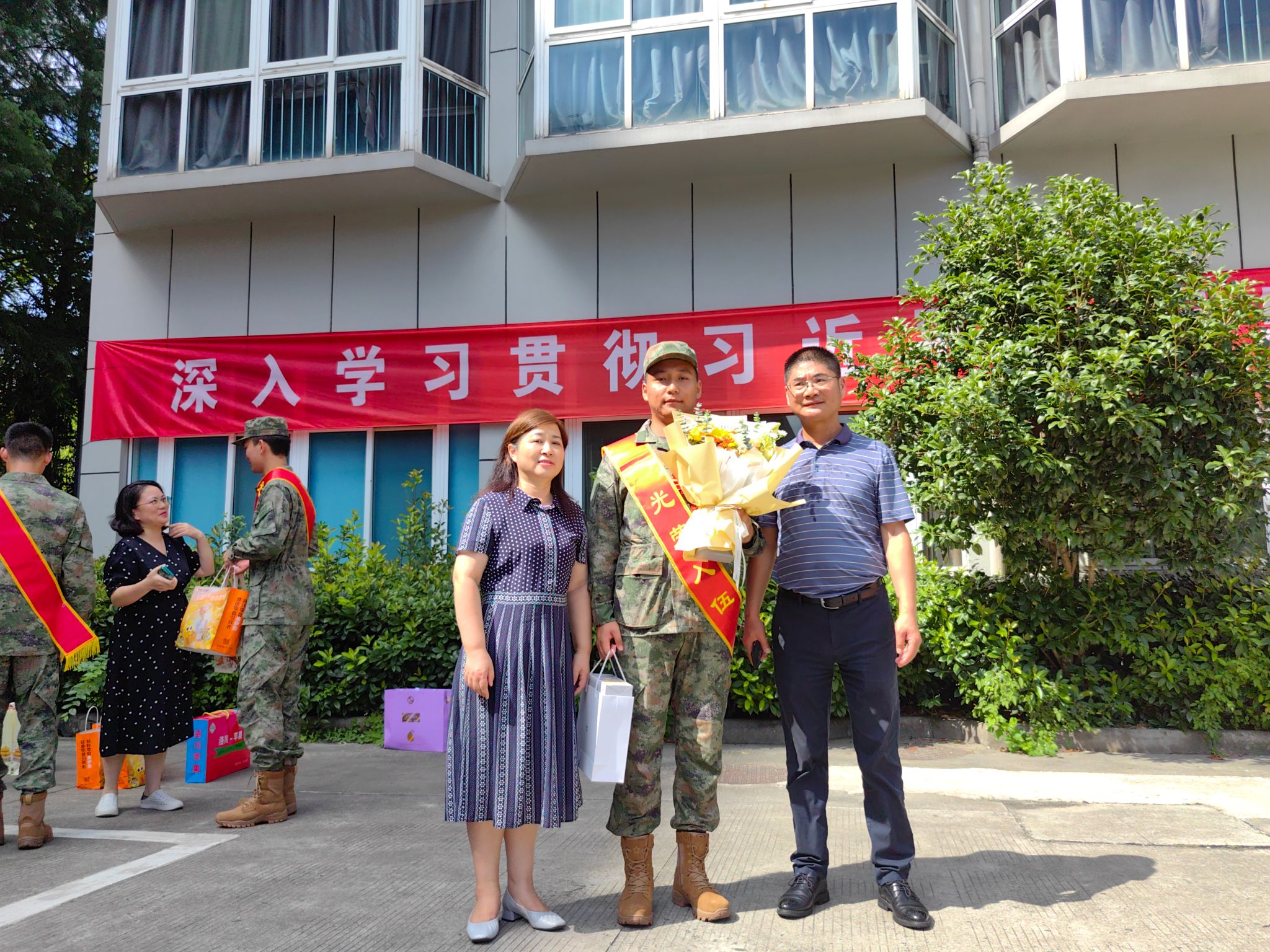 丛彬彬在讲话中指出,学校党委高度重视征兵工作,始终将大学生征兵工作作为重要政治使命,积极探索新途径、新方法,精心策划,严格遴选,2024年秋季我校共入伍16名新兵。她对新兵战士们表示祝贺,对支持国防建设的新兵家长表示感谢。她和新兵们重温了2017年习近平总书记给南开大学8名新入伍大学生的回信,并对他们提出了四点要求:一是树立新的人生目标,牢记党和国家赋予的使命,坚定理想信念,传承红色血脉,弘扬爱国主义、革命英雄主义、集体主义等精神,沿着革命英雄的足迹奋勇前进;二是利用学院教育和专业发展的优势,主动学习,扎实学习,苦练本领,转变角色,从一名大学生蜕变为一名军人,尽快地适应军营,更好地服务现代化军队建设体系;三是在部队做好人生规划,明确自己的成长道路和努力方向,将个人奋斗与强军强国事业紧密结合起来;四是严格训练,培养坚定的信念和顽强的意志,提升抗压能力和自我调节能力,学会独立思考,以实际行动回馈社会。