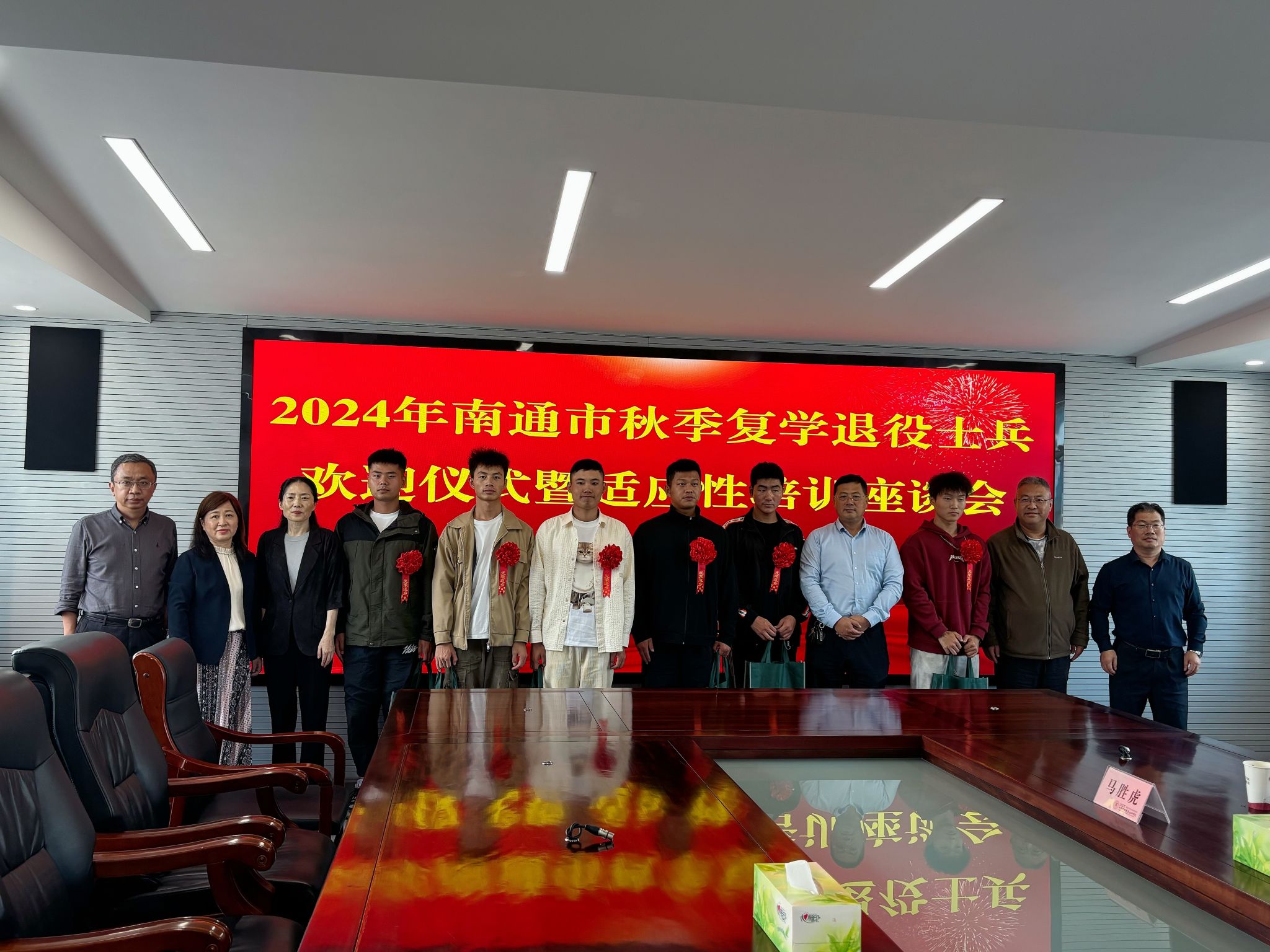 10月14日下午,2024年崇川区秋季复学退役士兵返乡欢迎暨适应性培训座谈会在我校行政楼第一会议室召开。校党委委员、副校长丛彬彬,南通市退役军人事务局党组书记、局长周海斌,南通市退役军人事务局党组成员、副局长顾羽出席,市、区两级退役军人事务局、高校人武部的相关人员及30余名复学退役大学生士兵参加。会议由崇川区退役军人事务局党组书记、局长马胜虎主持。