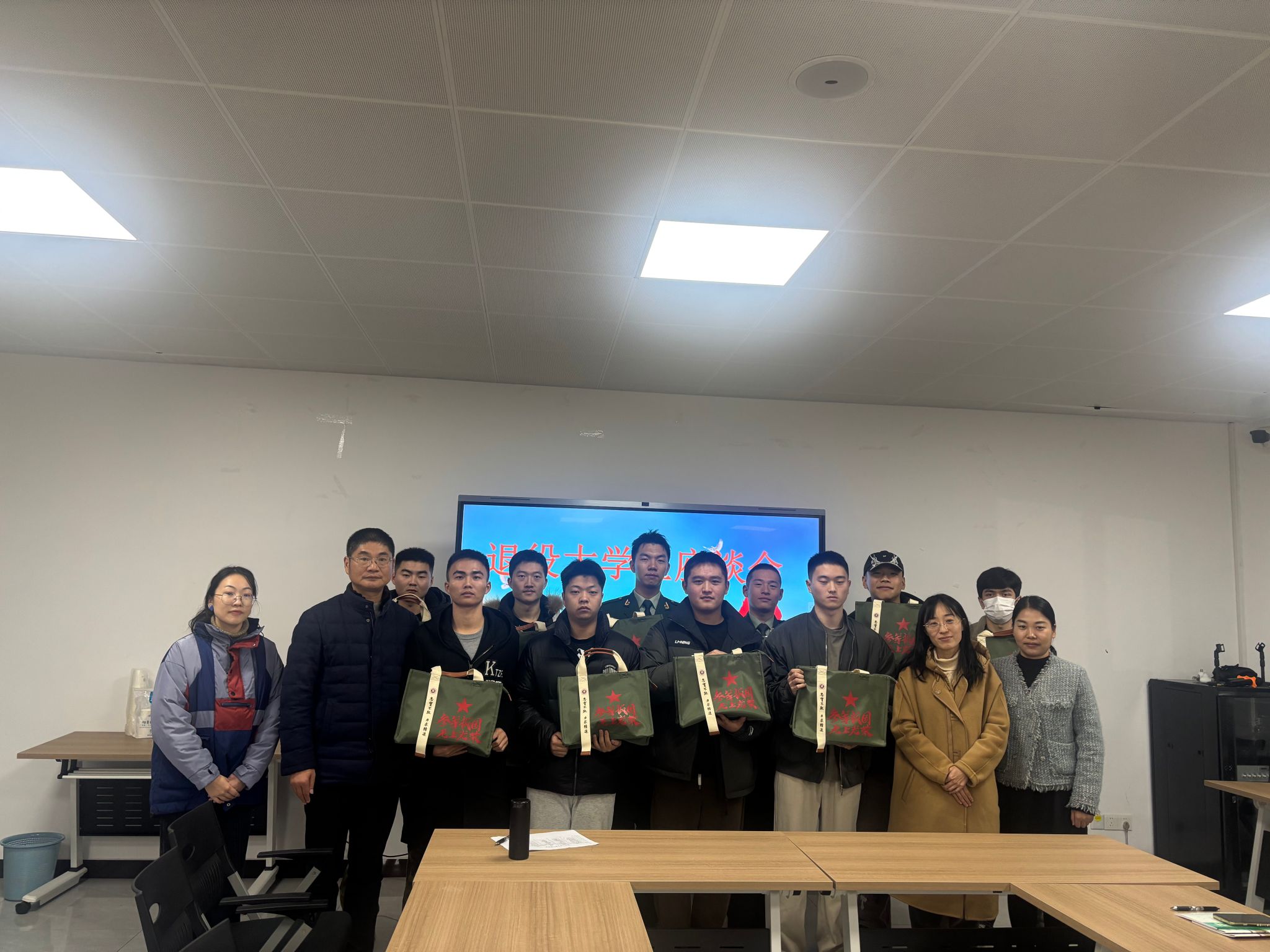 12月17日下午,我校在一站式学生社区服务中心的多功能室召开了退役大学生座谈会。校人武部部长顾培中,征兵科科长刘燕,征兵辅导员陈筱洁、陈芳芳、李楠及退役学生代表参会。